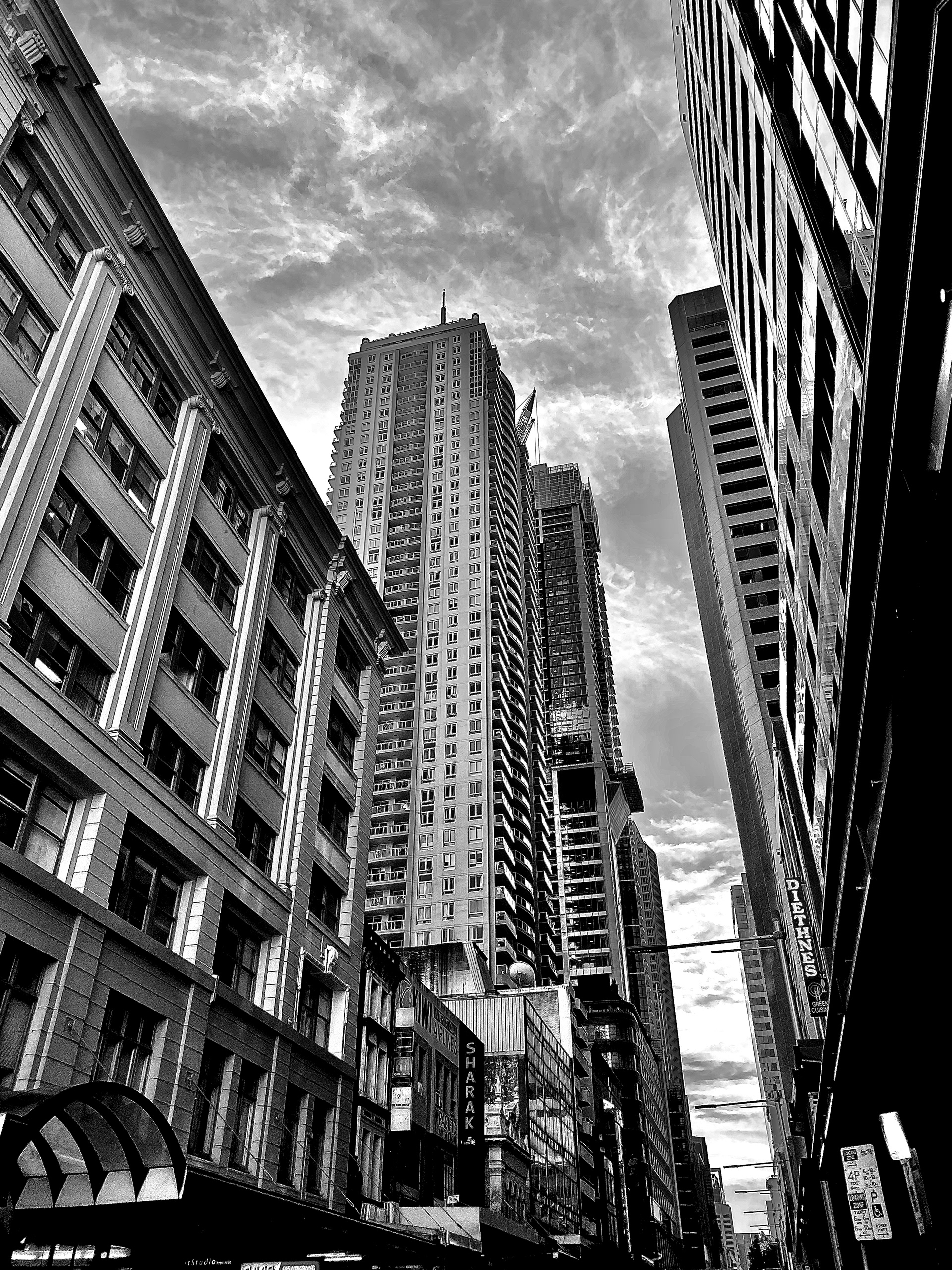 These works highlight the potential of city scenarios to evoke a film noir atmosphere. Using high contrast and obscure atmospherics, perceptions of these places are shifted from reality and contrasted with the notion of architecture as a symbol of progress. The project inspires contemplation on the true nature of progress and raises questions on whether it is simply a facade or a genuine reality.